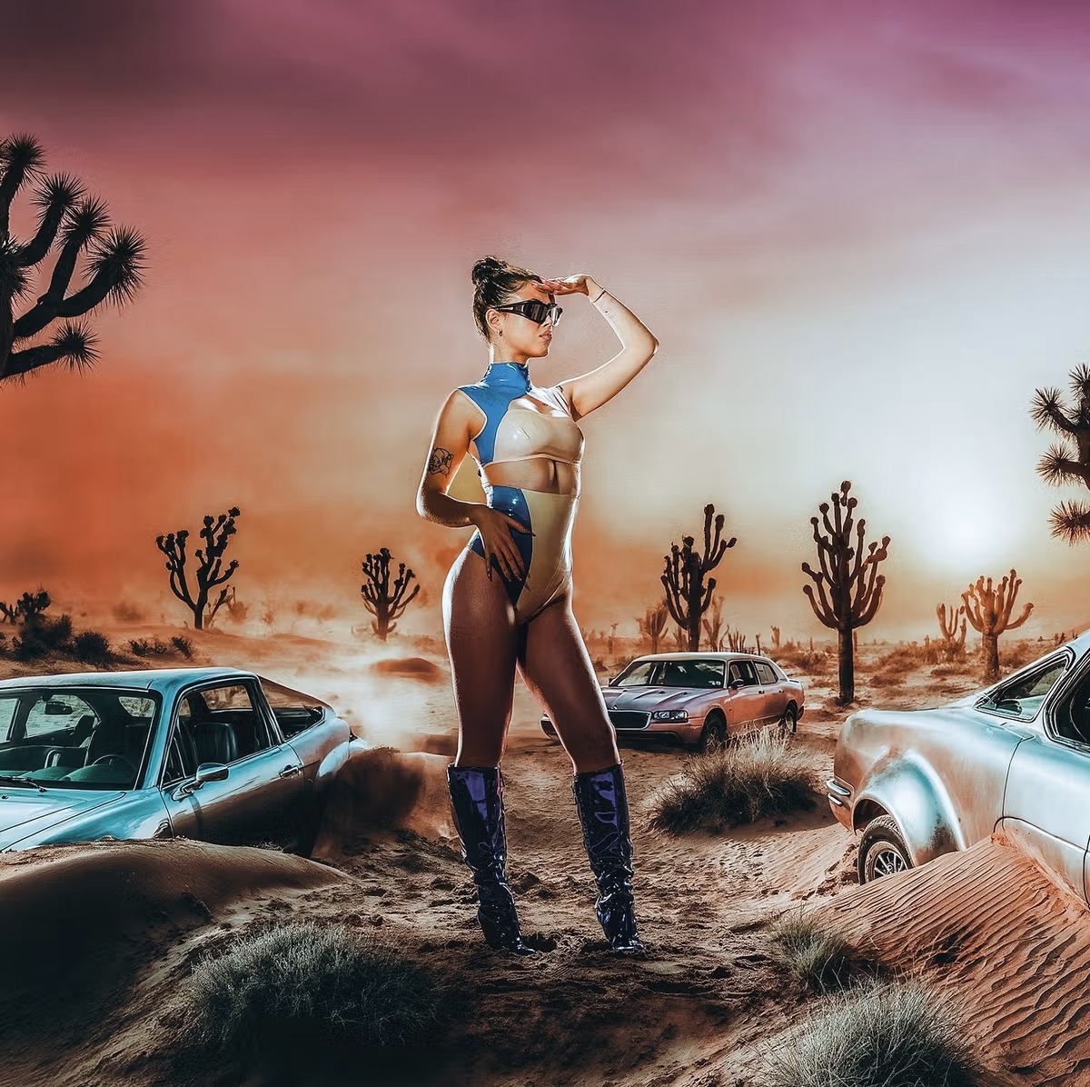 Experimentation lies at the center of Christian’s practice. Over the past few years, he has leaned heavily into generative tools, from early explorations of NFTs to the latest AI systems. For him, these technologies are not replacements but collaborators. “It’s not about doing less work, it’s about shifting the work. I spend less time cutting masks in Photoshop and more time defining ideas,” he says. By treating AI as a partner, he gains the space to focus on intuition, concepts, and the deliberate insertion of flaws that keep the work human.